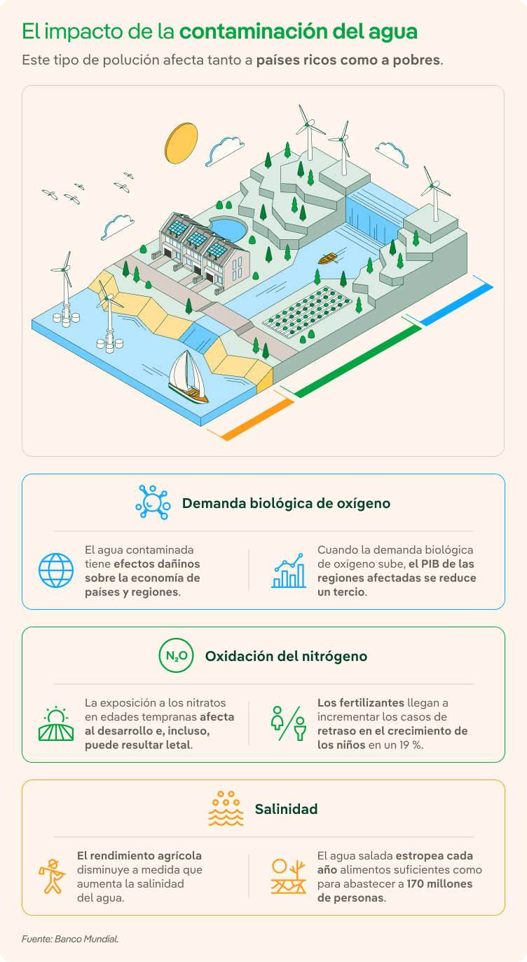 La contaminación del agua está íntimamente ligada a que se suele utilizar ambientes acuosos como reservorios de desechos.
