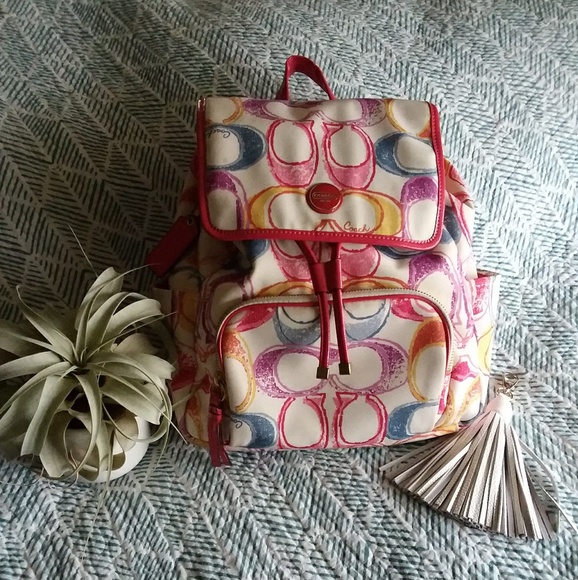 And we all know how shoddy things work they are like disposable items that you use now and useless later. COACH HAMPTON SCRIBBLE SIGNATURE LOGO WHITE PINK GREEN BLUE SHOULDER HANDBAG BAG. Dirt on the handles and a few dirty spots outside.